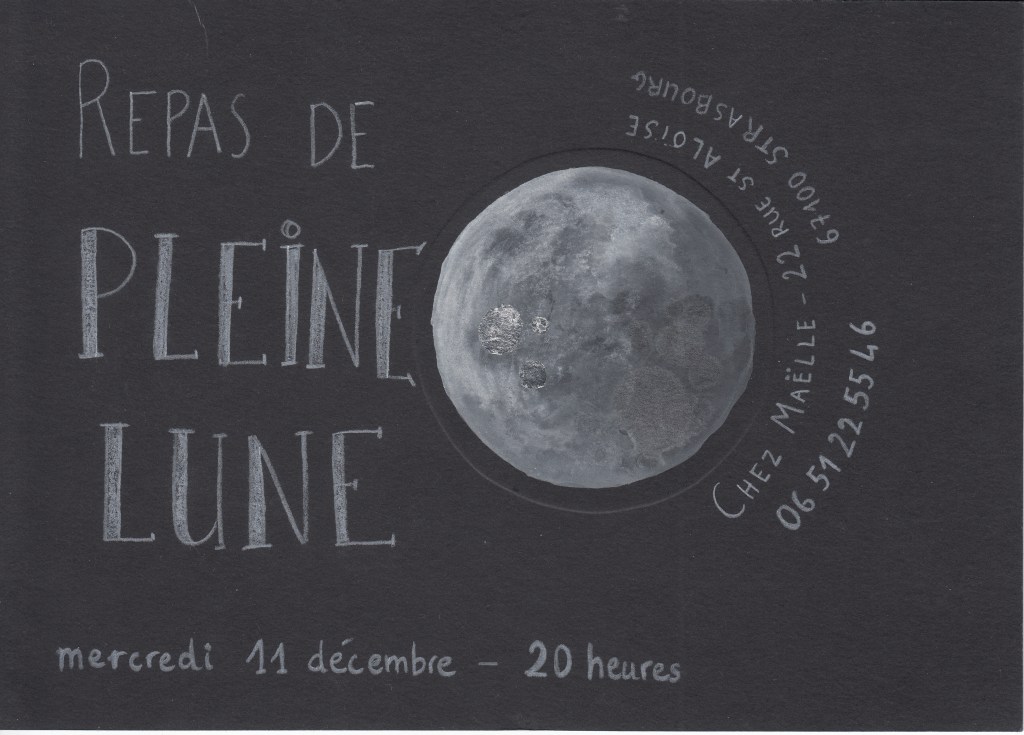 Repas de Pleine Lune – 11 décembre 2019 Maëlle12 décembre 20199 avril 2020Cuisine, Repas de Lune Navigation des articles PrécédentSuivant 6 Femmes Pleine LuneRepas blancEn silence et Pleine conscience Articles similaires