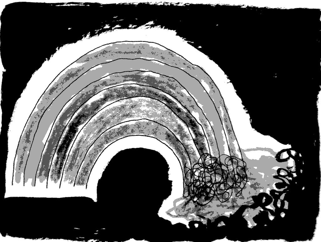 La maîtresse m’a dit que quand on mélange toutes les couleurs de l’arc en ciel ça fait du noir.