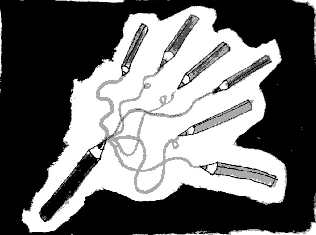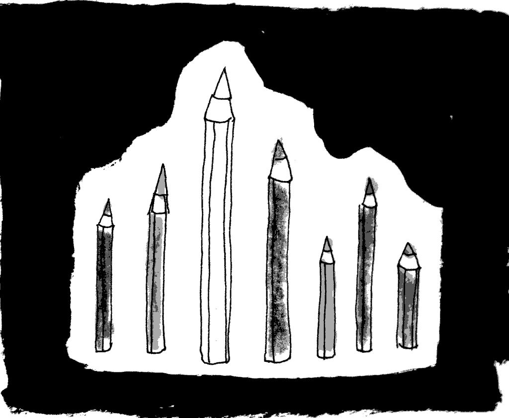 J’ai un crayon de couleur blanche, mais je ne l’utilise presque jamais. Le blanc ce n’est pas très utile, mais ça ne me fait pas peur alors je garde les mines blanches.