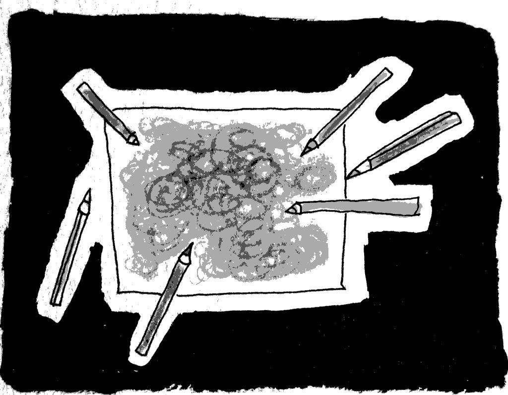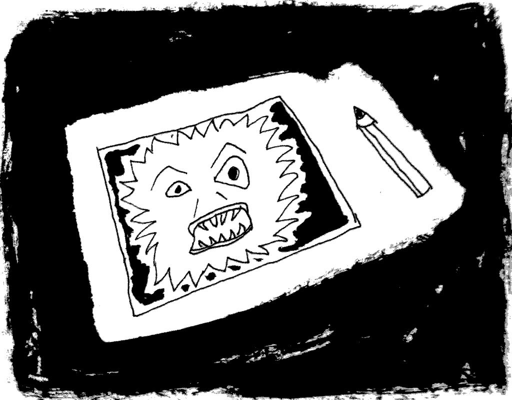Alors, parfois, quand je suis en colère, je prends tous mes crayons de couleurs et je gribouille une feuille avec toutes les couleurs en appuyant très fort. Moi ça n’a jamais fait du noir, peut-être que je n’étais jamais en colère assez longtemps pour que ça marche.