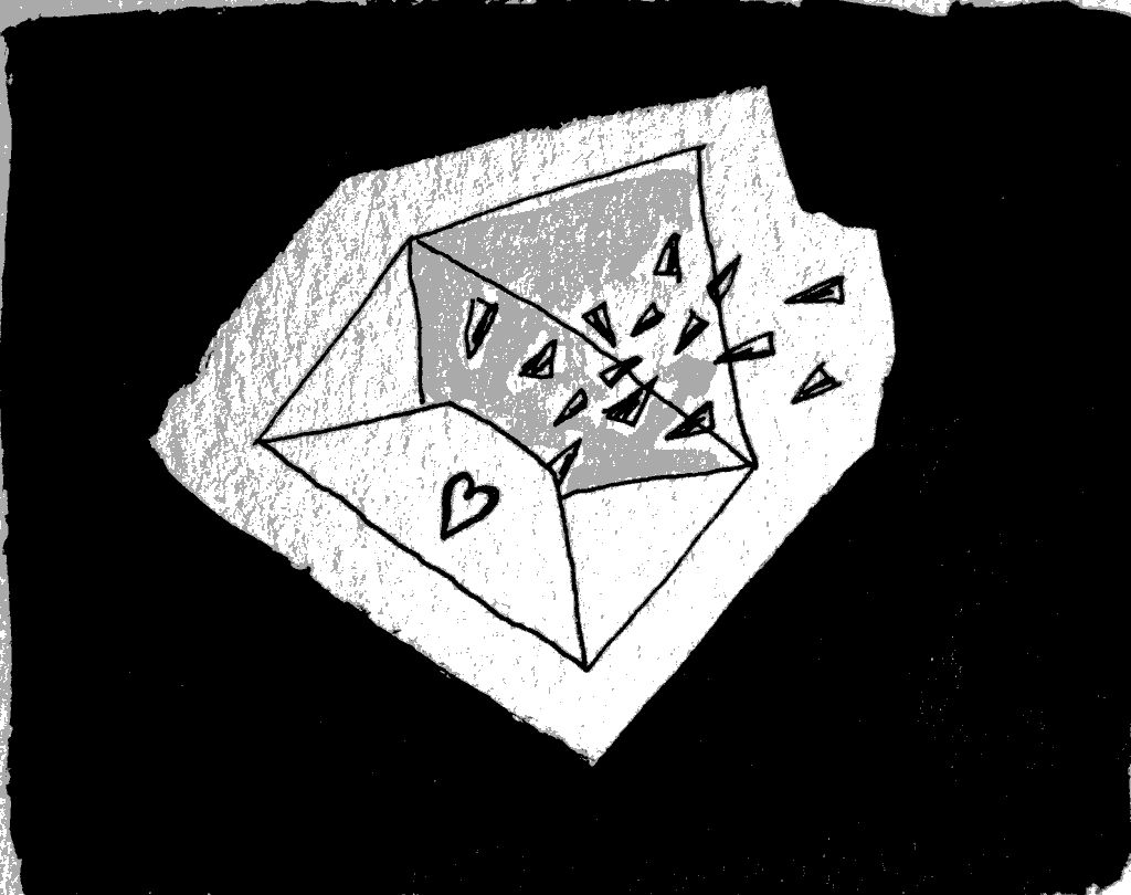 Il les mets toujours dans une petite enveloppe et les glisses dans mon casier. Je les gardes quand même, c’est gentil je trouve. Peut-être qu’il m’aime bien.