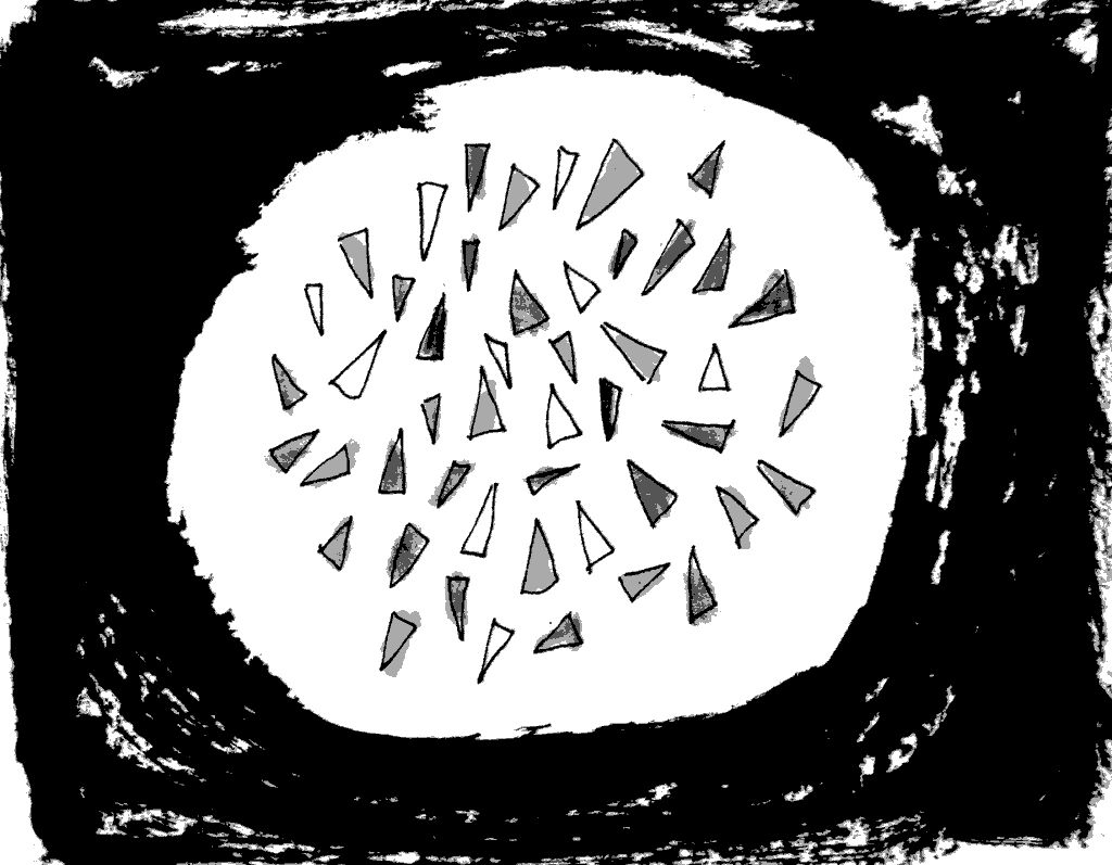 Dans le noir il y a tellement de couleurs que ça ne laisse pas passer la lumière, et dans le blanc il n’y a aucune couleurs alors ça laisse passer toute la lumière.
