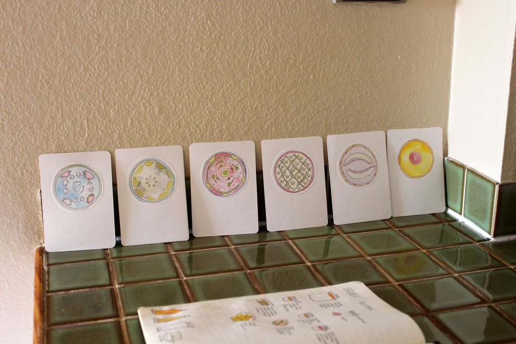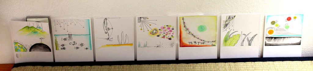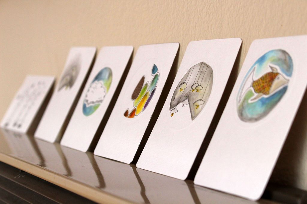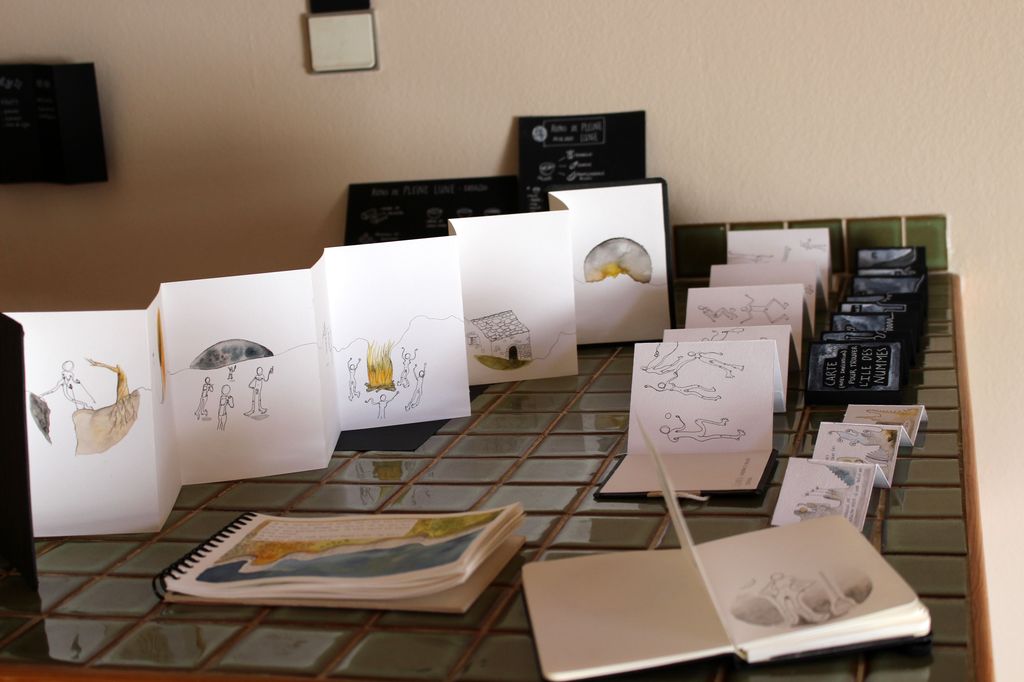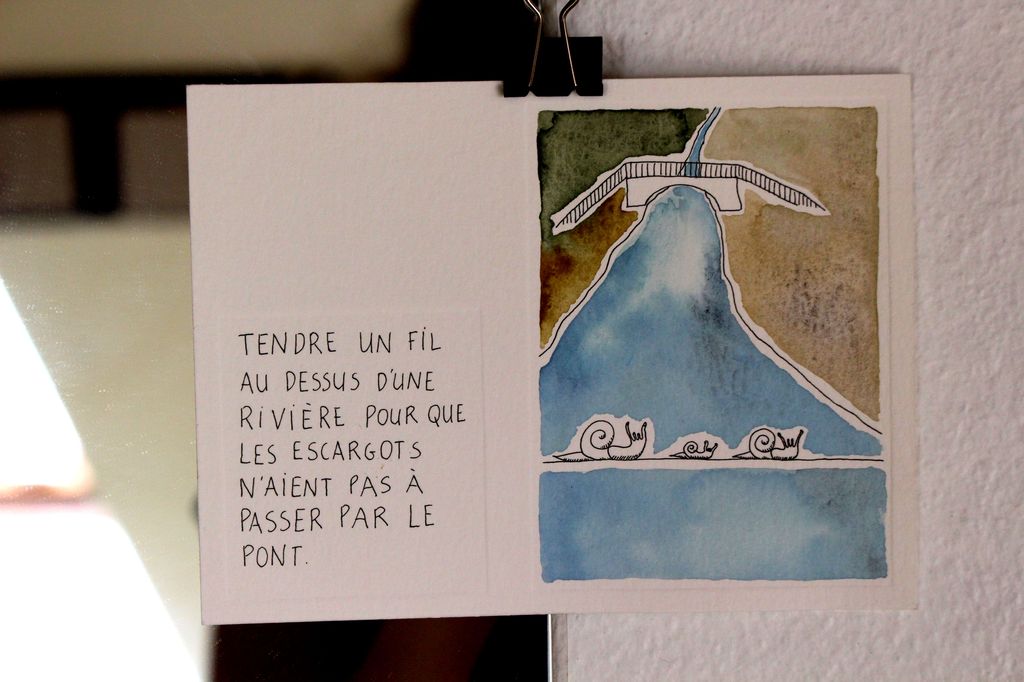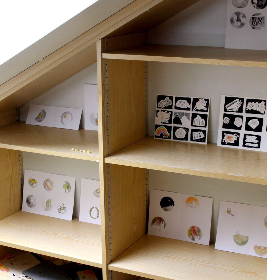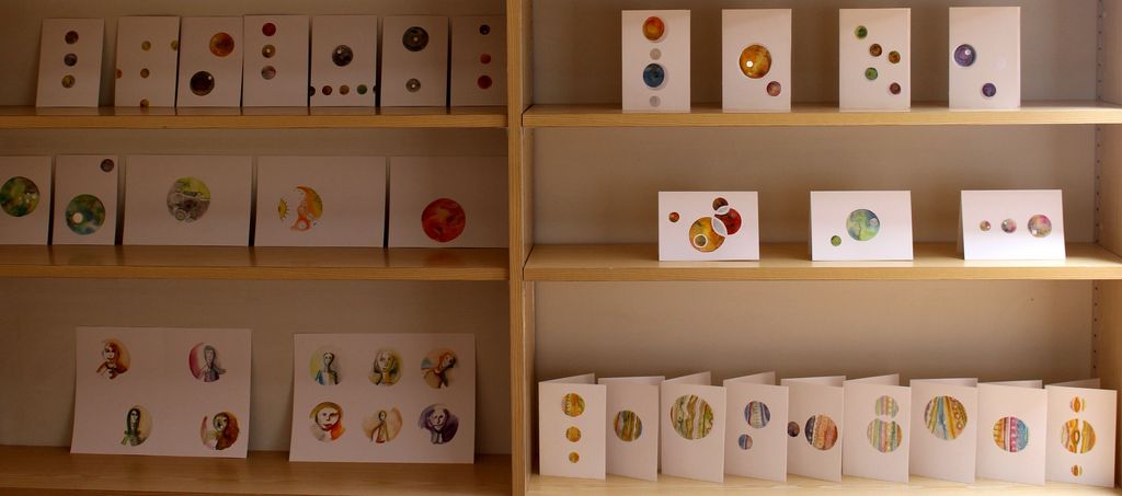 Des cartes aux messages poétiques à envoyer à des inconnus et des cartes à ronds. Certaines sont vendues.