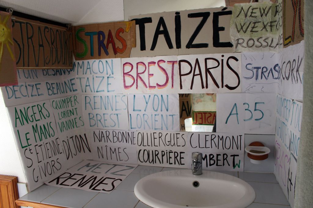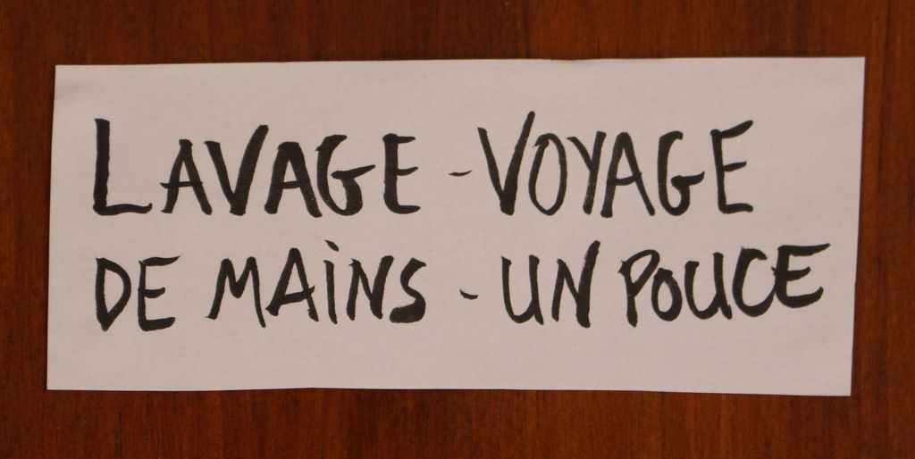 Le coronavirus m’inspire pour la faire démarrer par un « lavage-voyage de mains » dans ma salle de bain. Dédicace à toutes les personnes avec qui j’ai fait du stop ces 5 dernières années. Je me suis séparée de (presque) tous mes panneaux après l’exposition.