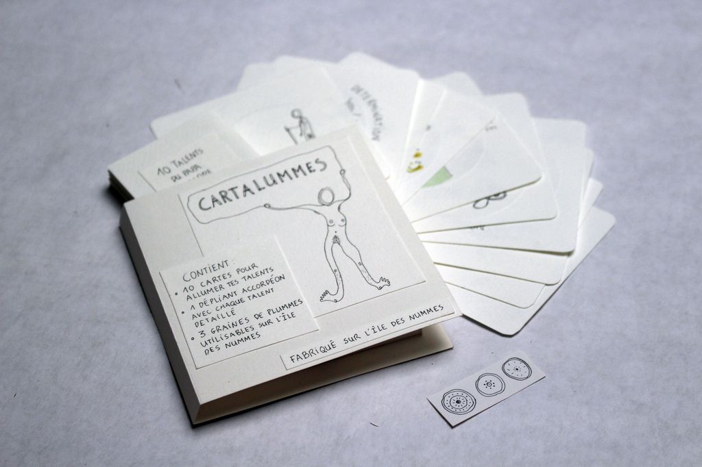 Voici le 3ème jeu de Cartalummes que je ramène de l’Île des Nummes. Si toi aussi tu veux allumer tes talents ou ceux de quelqu’un.e que tu aimes (ou même de quelqu’un.e que tu n’aimes pas), contacte-moi là je pourrais transmettre ta demande aux Nummes et je te servirais d’intermédiaire entre eux et toi.