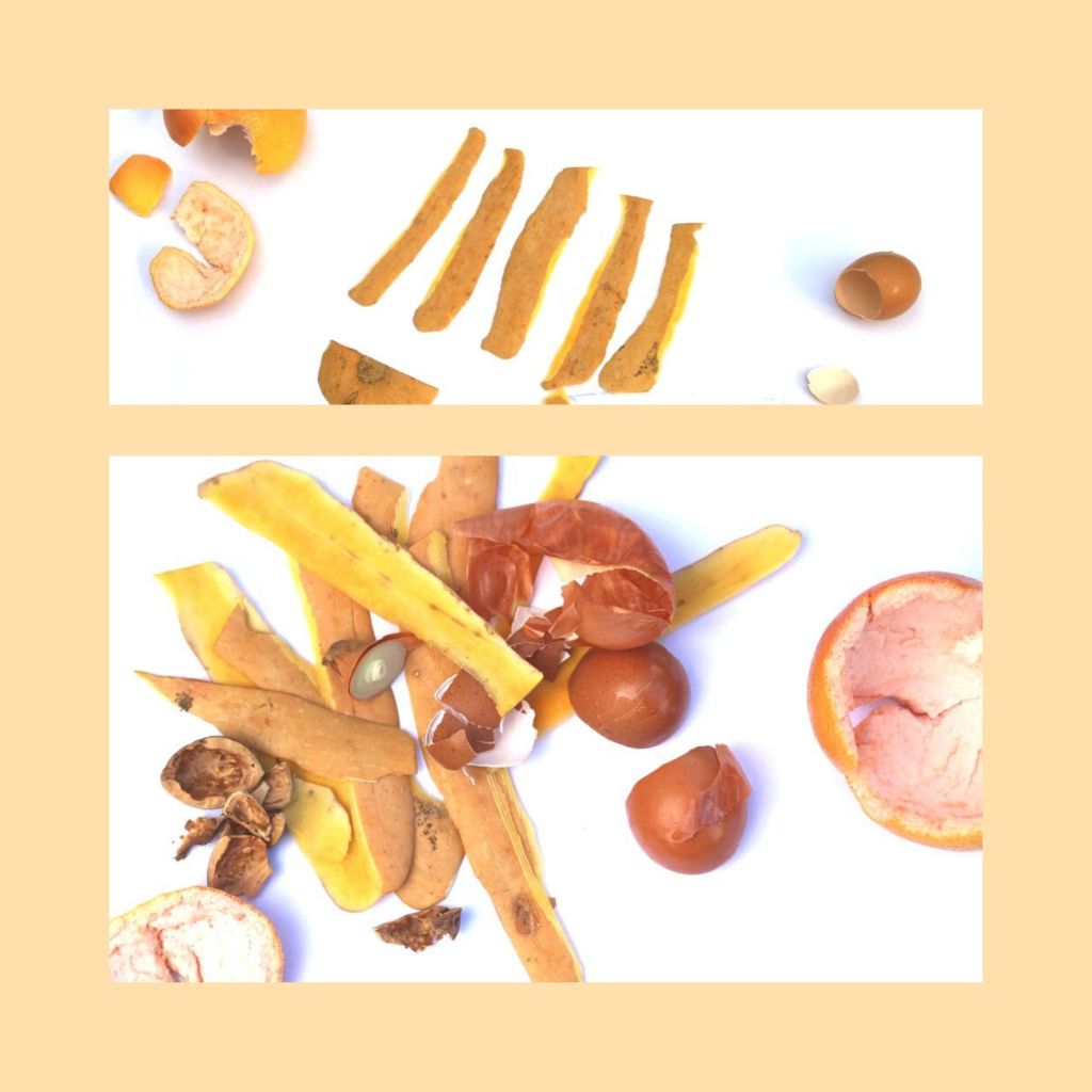 Ce jour là je préparais le repas de nouvelle Lune. Je n’avais pas vraiment de temps pour le défi. J’ai vu quelques épluchures d’oignons et des coquilles d’œufs, traîner dans la cuisine. C’était couleur pêche. (Pendant tout le défi, dès qu’un objet de la couleur du jour passais sous mes yeux je le remarquais). J’ai trouvé d’autres épluchures. J’ai pris des photos. Je trouve que les aliments sont très forts en packaging !