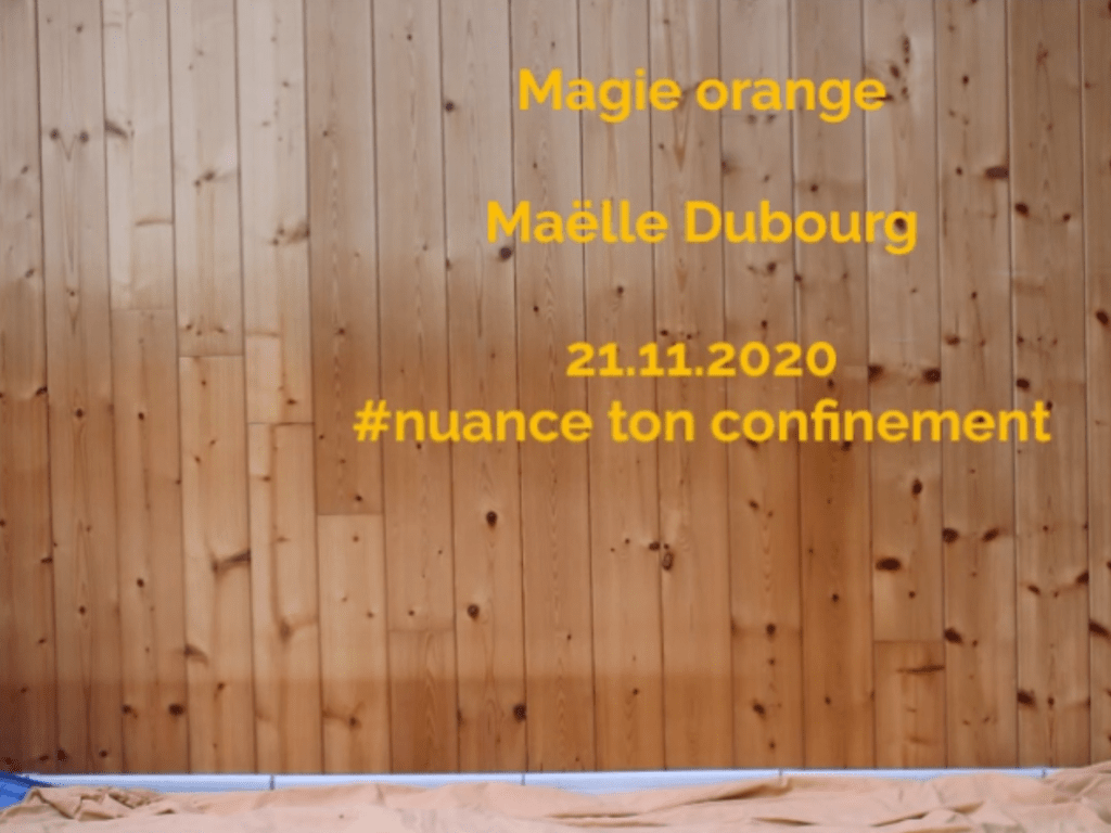 « J’y ai consacré simplement une après-midi. J’ai fait les choses sans vraiment réfléchir. J’ai cherché des objets oranges, posé ma caméra, fait des trucs étranges devant elle, écrit un texte sans réfléchir. Tout mis en vrac sur le logiciel de montage. J’aime voir de la magie dans les choses absurdes qui n’ont pas vraiment de sens et qui deviennent alors des images poétiques. »