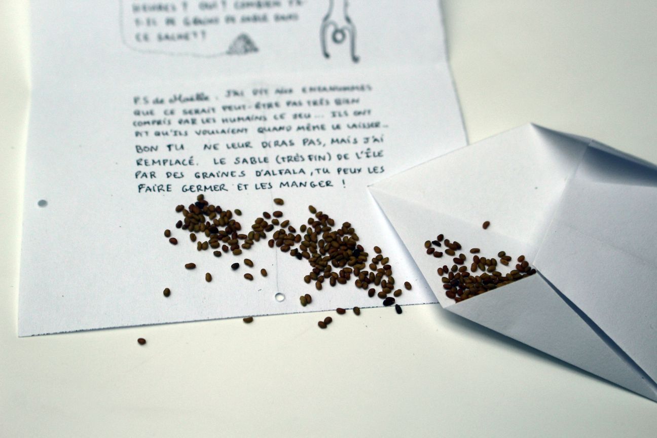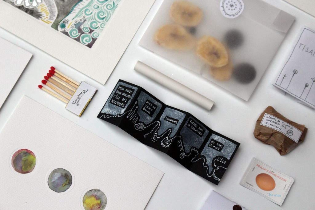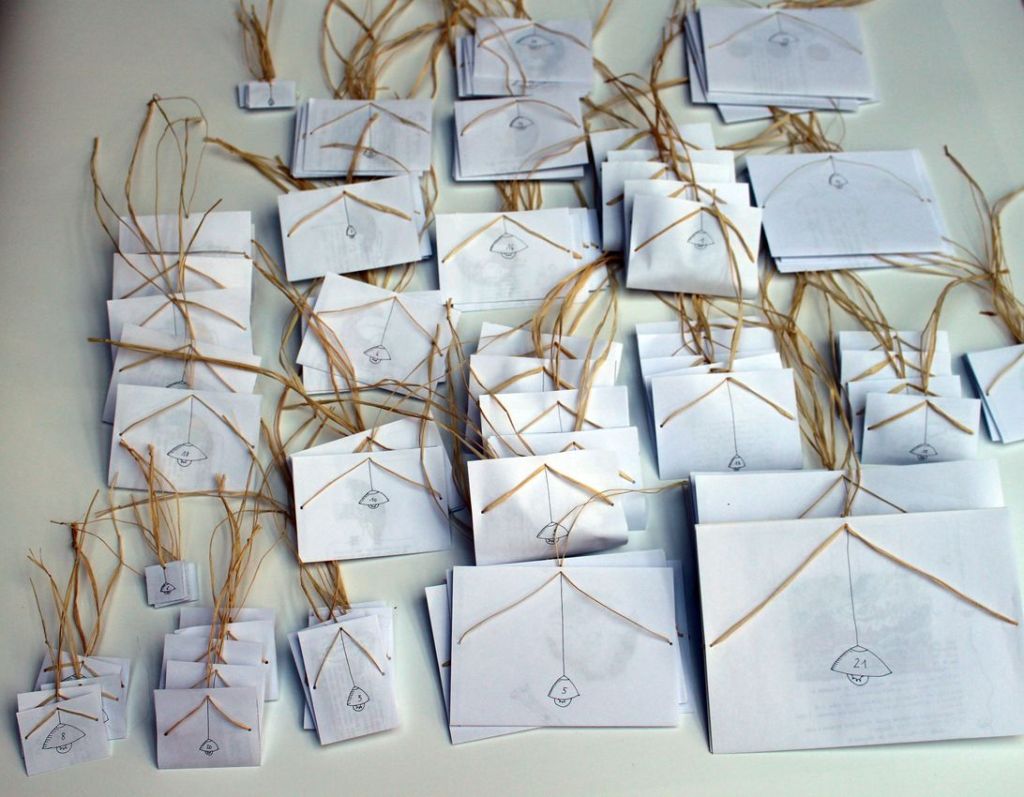 Tous les jours un petit papier racontant une petite histoire de l’Île des Nummes accompagné d’un objet, d’une carte, un dépliant, une gourmandise etc…