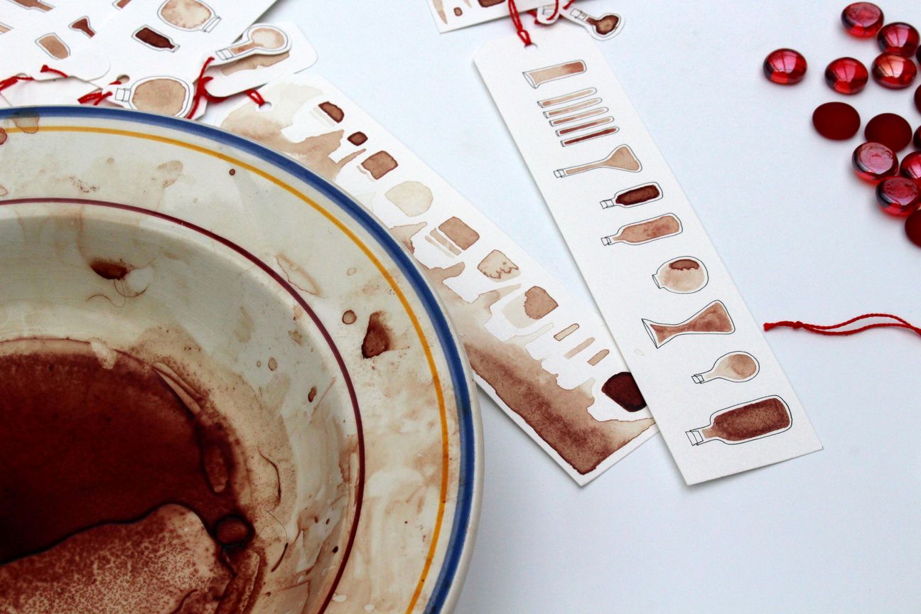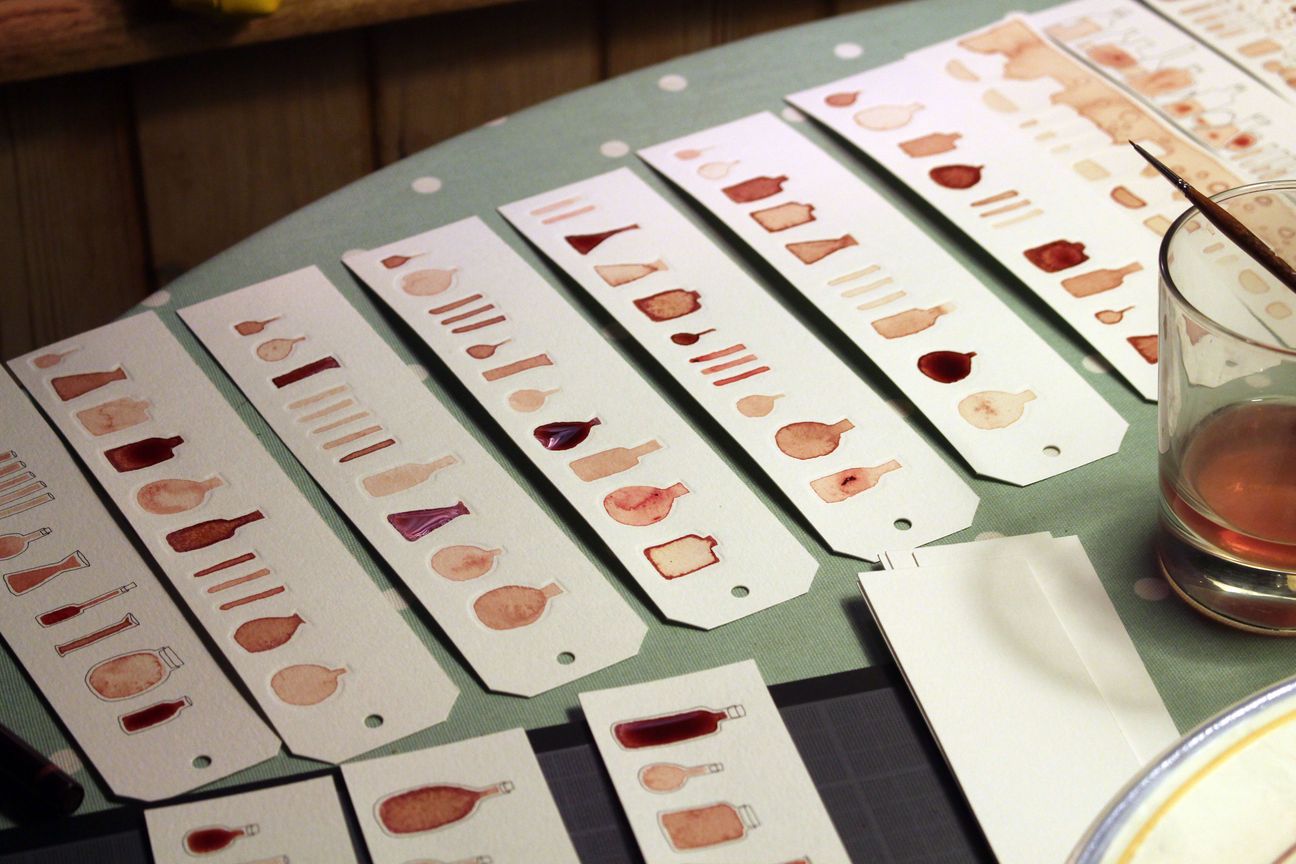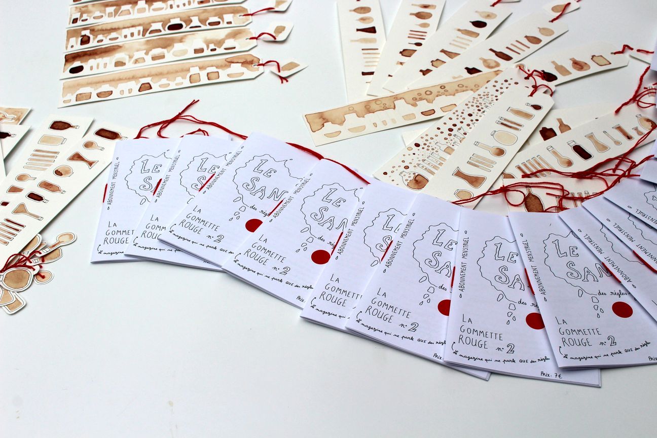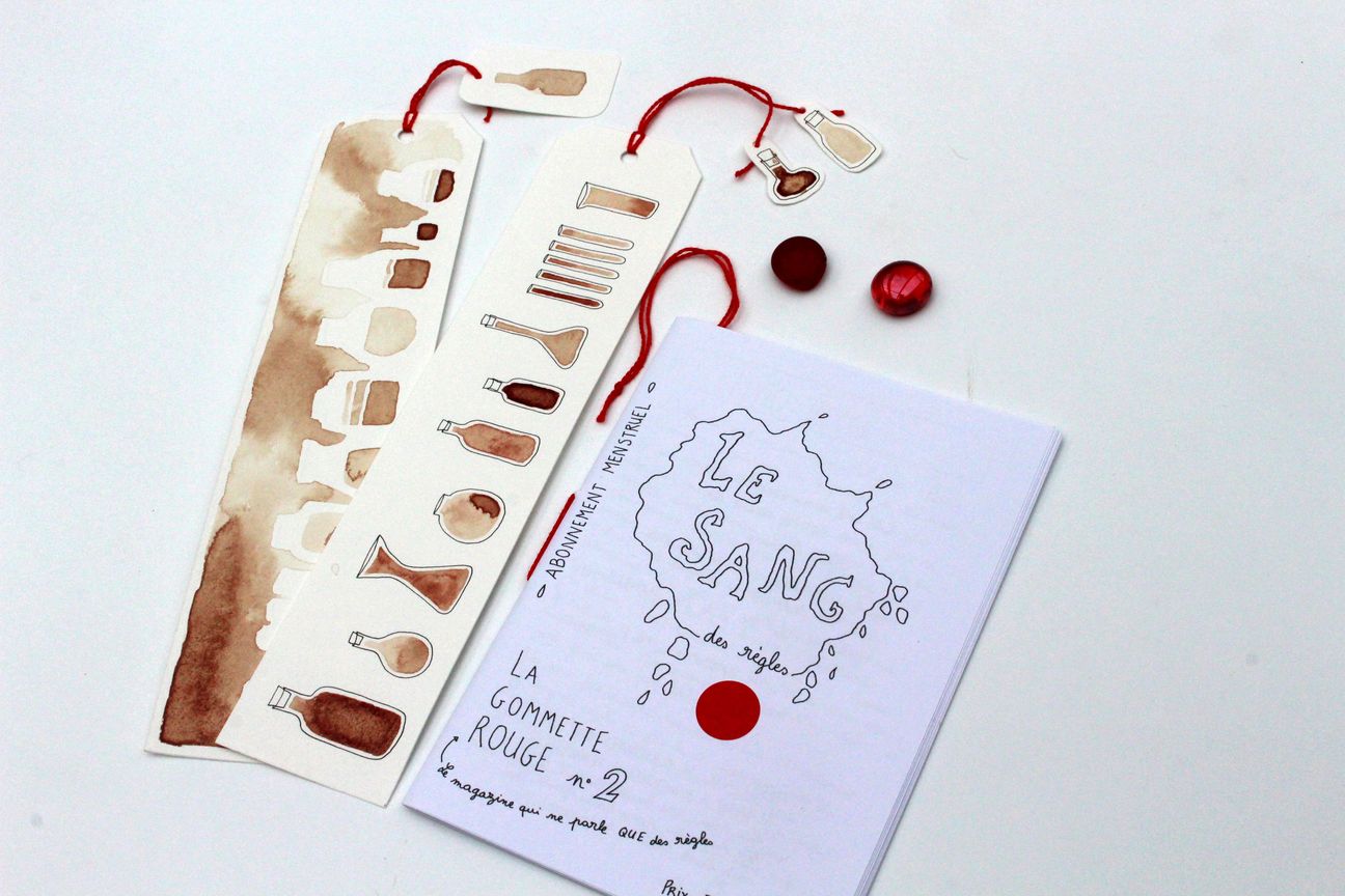 J’ai fait des marque-pages menstruels pour les abonné.e.s de La Gommette Rouge et j’ai aussi refait quelques cartes et des dessins sur du papier aquarelle. J’aime vraiment beaucoup ce fluide et les rendus. Si vous voulez un dessin ou une carte je les vends aussi !