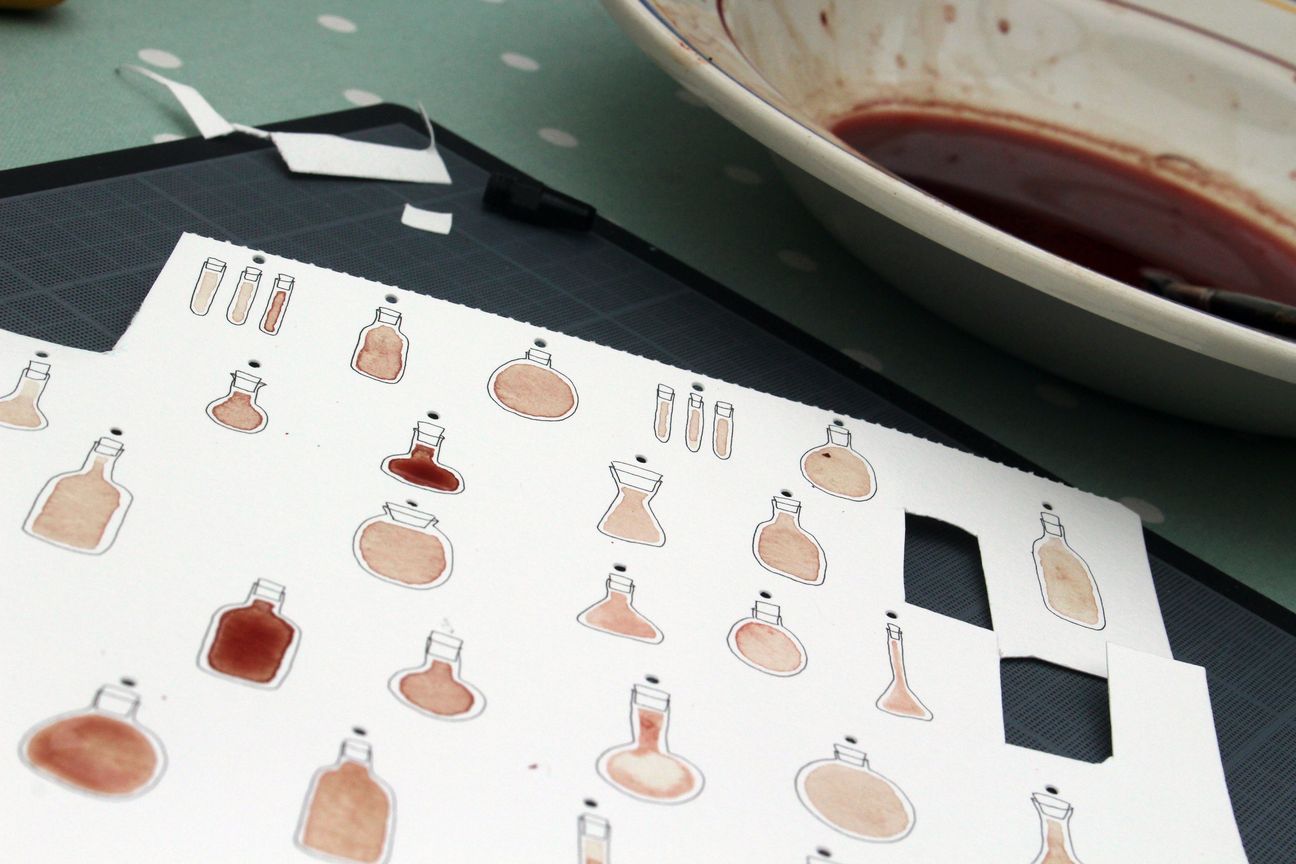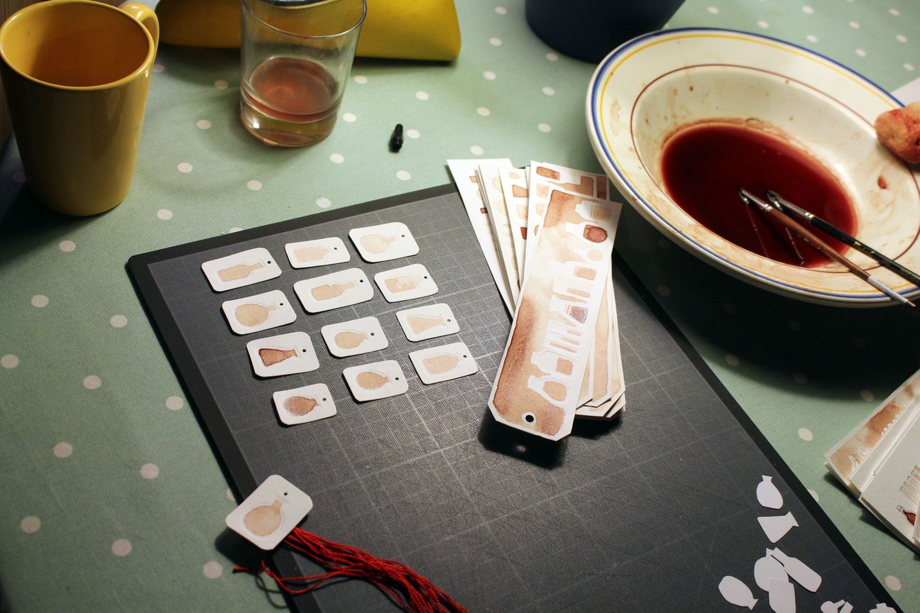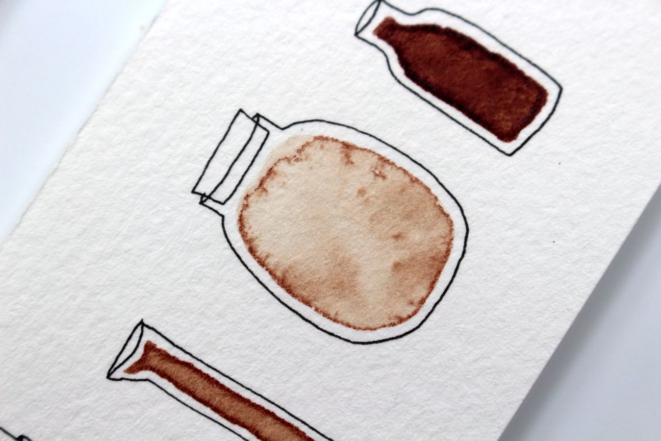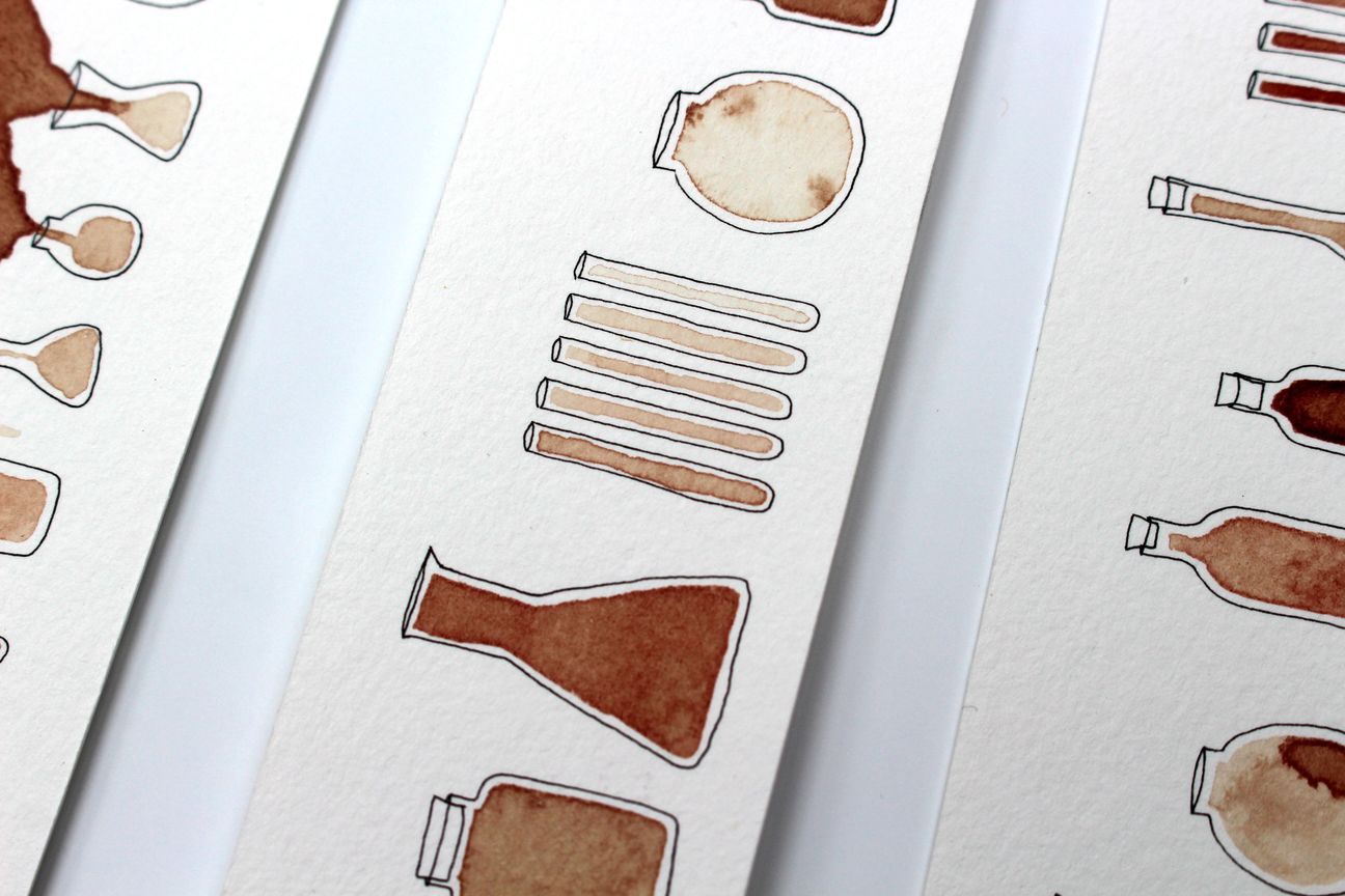 J’ai fait des marque-pages menstruels pour les abonné.e.s de La Gommette Rouge et j’ai aussi refait quelques cartes et des dessins sur du papier aquarelle. J’aime vraiment beaucoup ce fluide et les rendus. Si vous voulez un dessin ou une carte je les vends aussi !