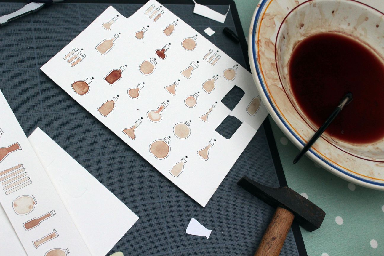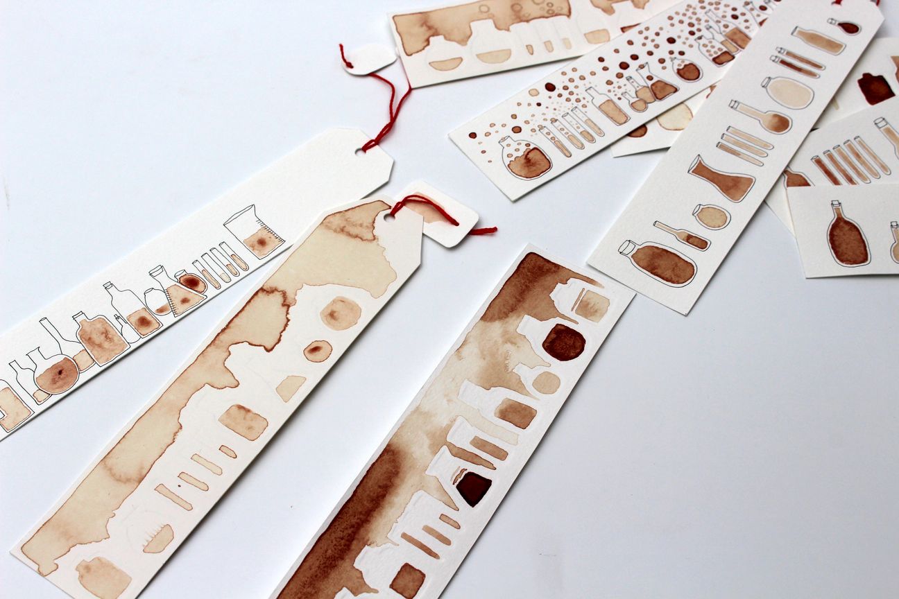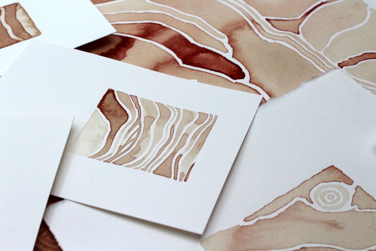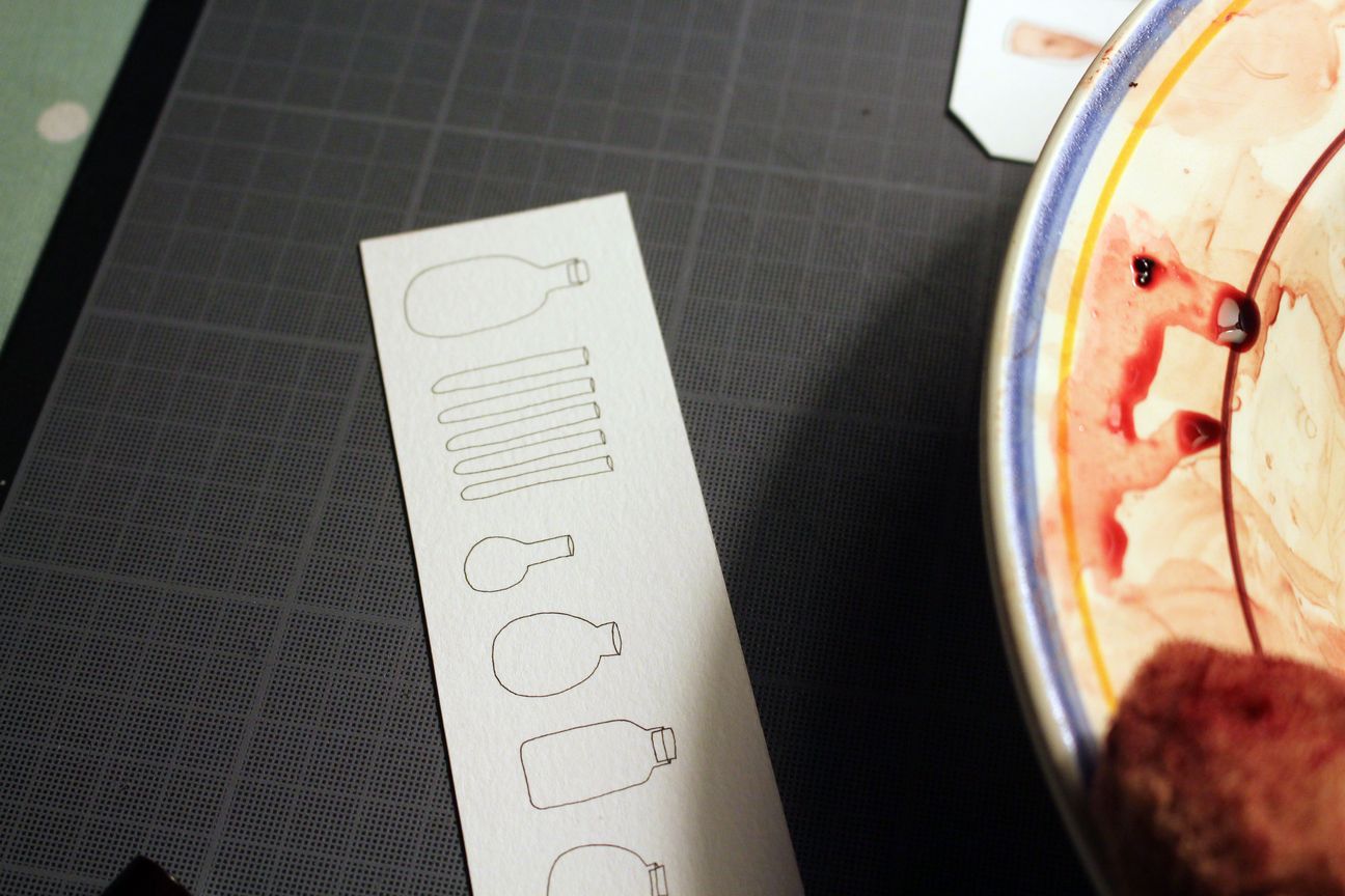 J’ai fait des marque-pages menstruels pour les abonné.e.s de La Gommette Rouge et j’ai aussi refait quelques cartes et des dessins sur du papier aquarelle. J’aime vraiment beaucoup ce fluide et les rendus. Si vous voulez un dessin ou une carte je les vends aussi !