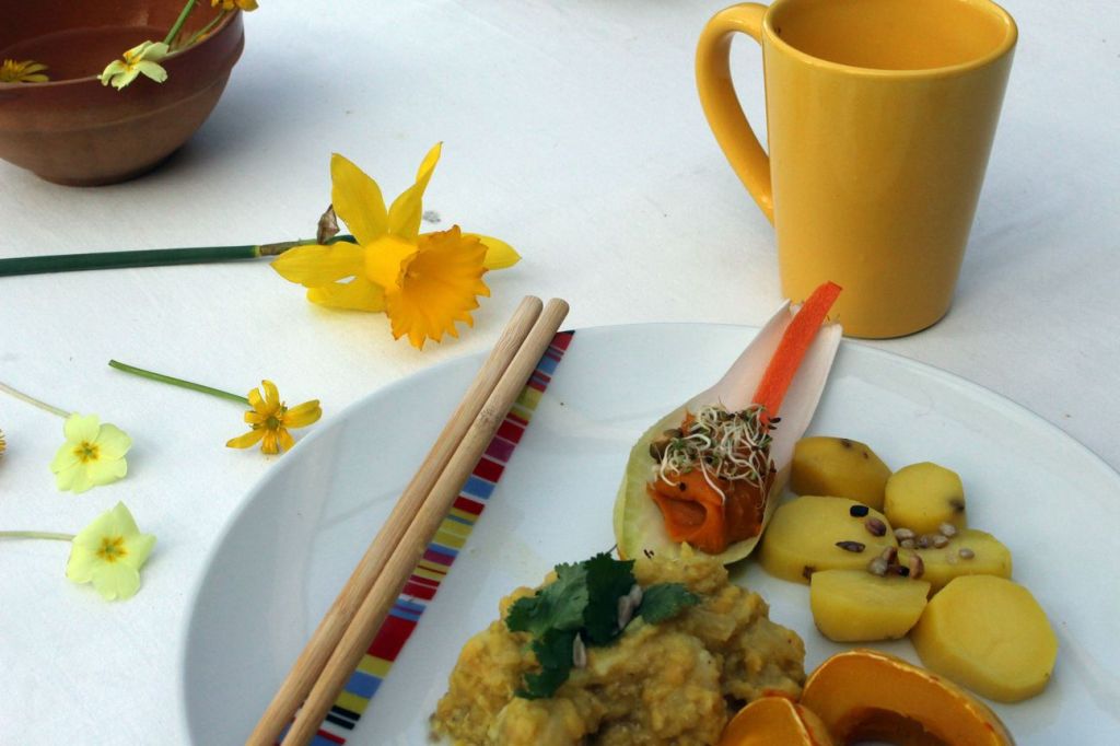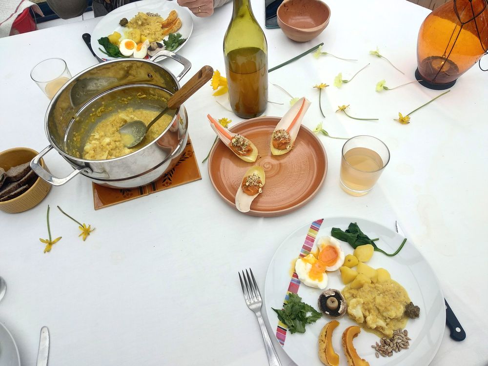 Le 25 février c’était mon anniversaire. Alors j’ai préparé un repas tout jaune. Le jaune c’est ma couleur préférée depuis toujours. Depuis l’époque de ma cuillère jaune de quand j’étais toute petite. Un jour je l’ai perdue. Est-ce que j’essaye sans cesse de la retrouver en m’entourant de cette couleur ?