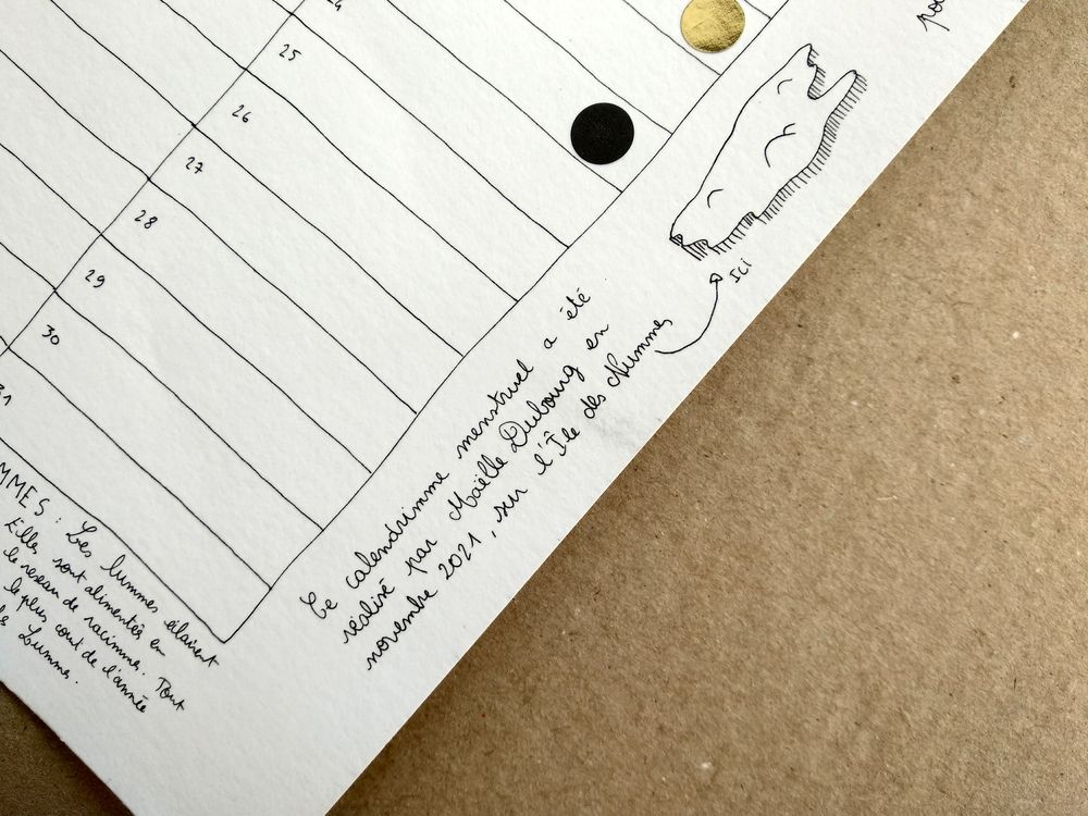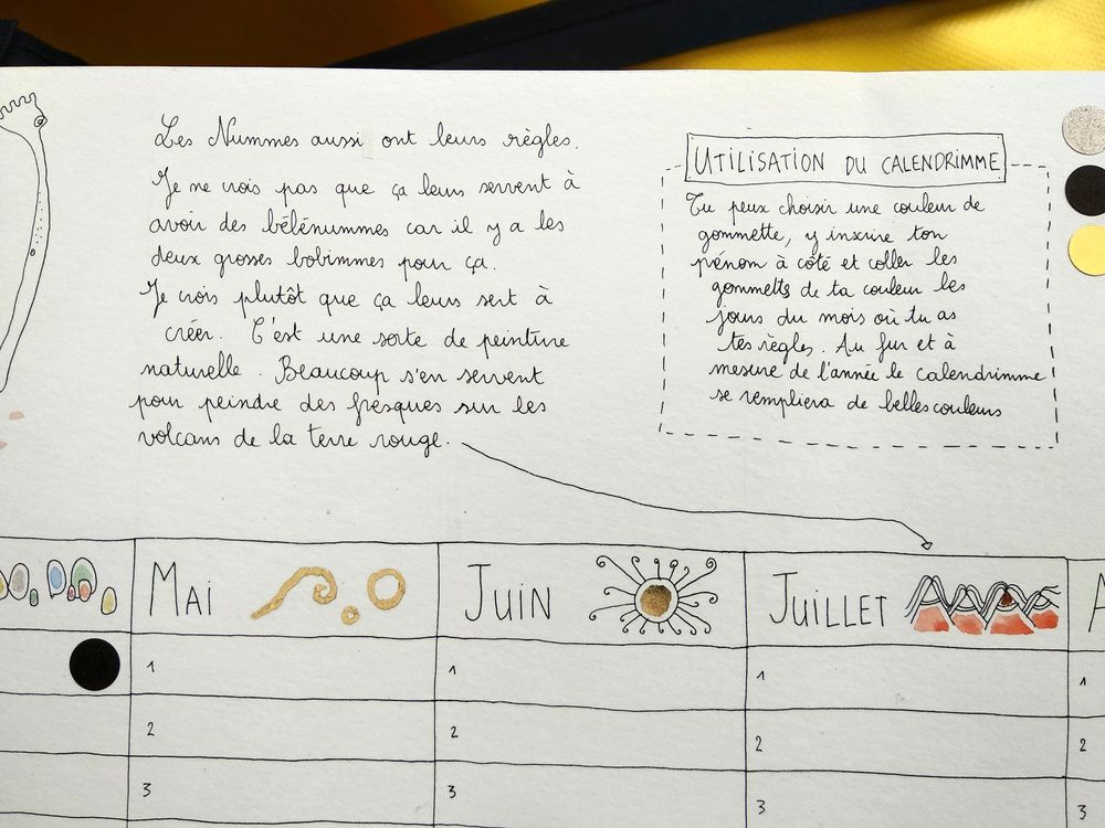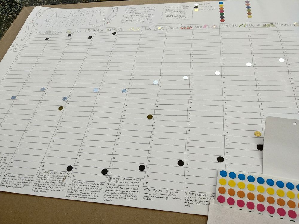 J’ai eu le plaisir de réaliser en collaboration avec les Nummes ce « Calendrimme Menstruel » pour l’éco-lieu dans lequel habite une amie.