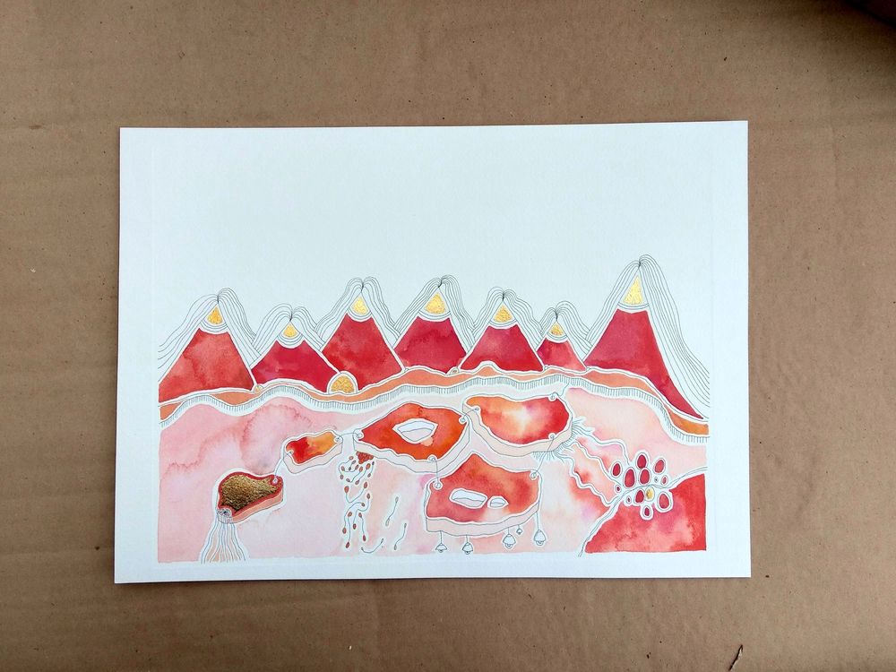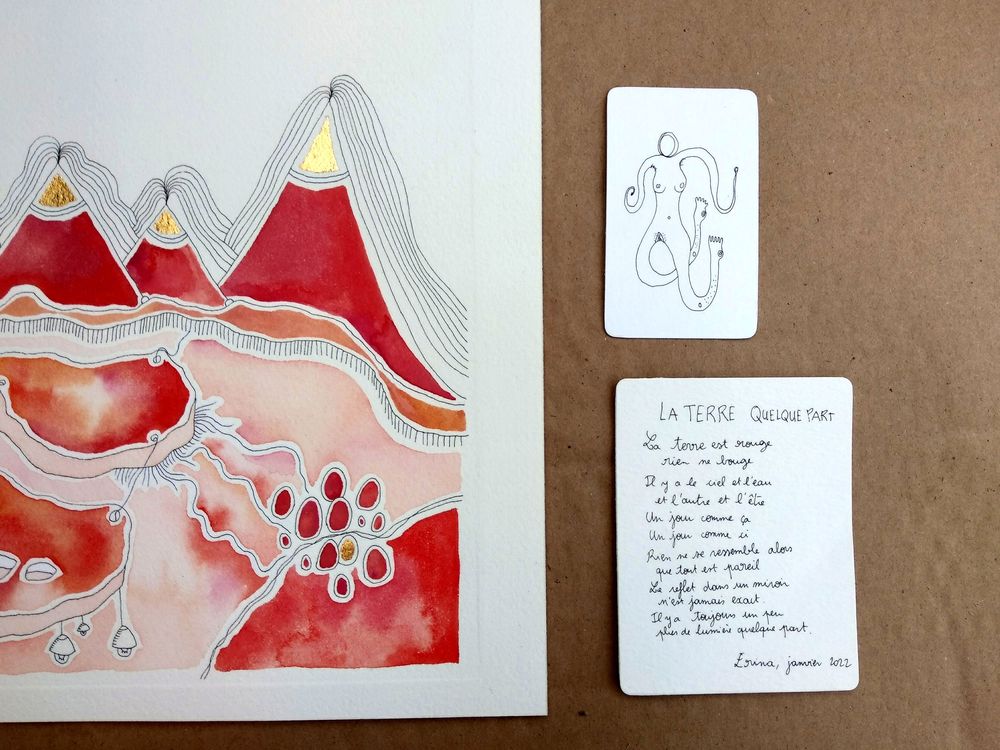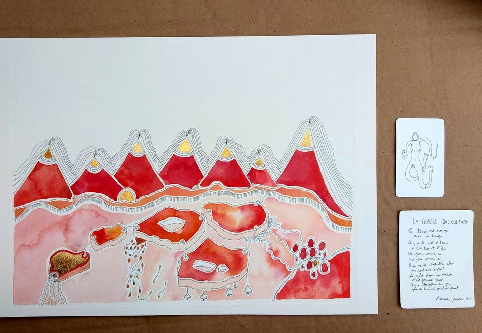 Voici un paysage de La Terre Rouge qui a voyagé un petit peu dans la valise des objets perdus avant d’arriver dans le sud chez mes ami.e.s L&L !