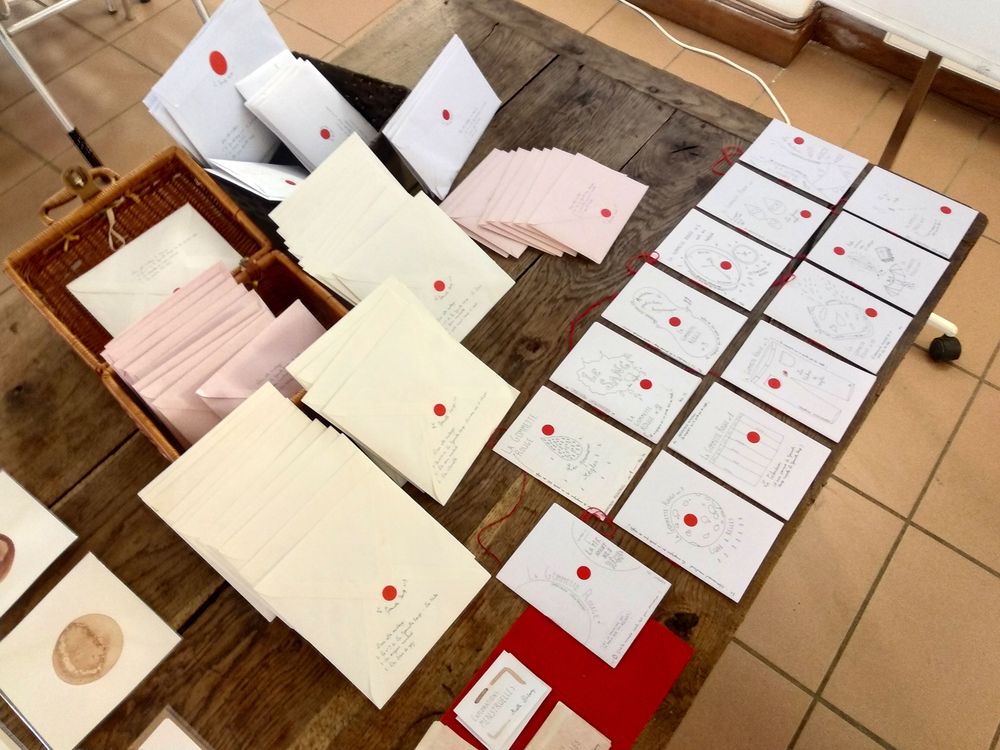 J’ai beaucoup aimé observer les réactions des visiteurs, répondre aux questions de la manière la plus naturelle et normale possible, raconter l’histoire des peintures menstruelles, expliquer comment est née La Gommette Rouge, comment je m’y prenait pour récupérer mon sang, alimenter des chouettes discussions de cups, de tampons, de taches et même de placenta !