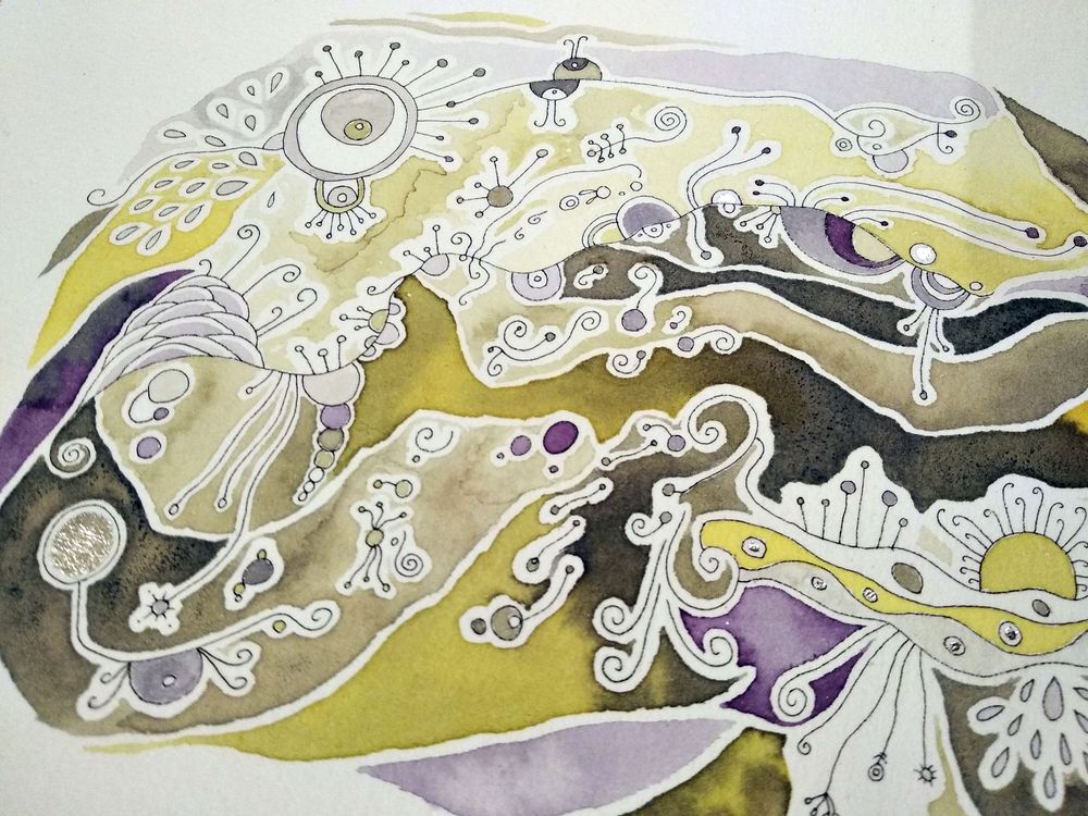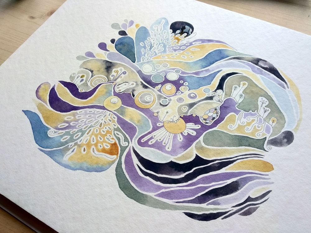 Le premier voyage, c’est celui que tu t’offrira en recevant chez toi, dans ta boîte aux lettres, un petit morceau de l’Île des Nummes, sous la forme d’un magnifique paysage, sur du papier aquarelle, accompagné d’une lumme à l’envers pour en voir tous les secrets ainsi que d’un peau-aime traduit des rummes.