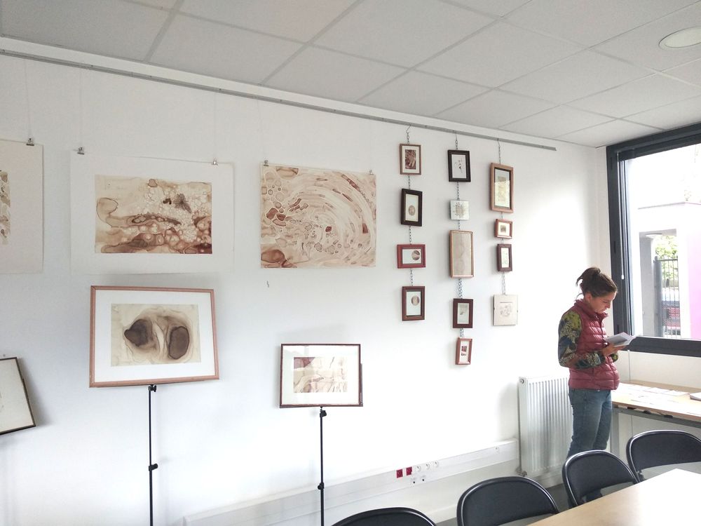 Dans le cadre d’une collecte de protections hygiéniques pour les personnes en situation de précarité menstruelle, le Planning Famillial de Grenoble m’a proposé de venir exposer mes « Explorations menstruelles » pendant la durée de la collecte.