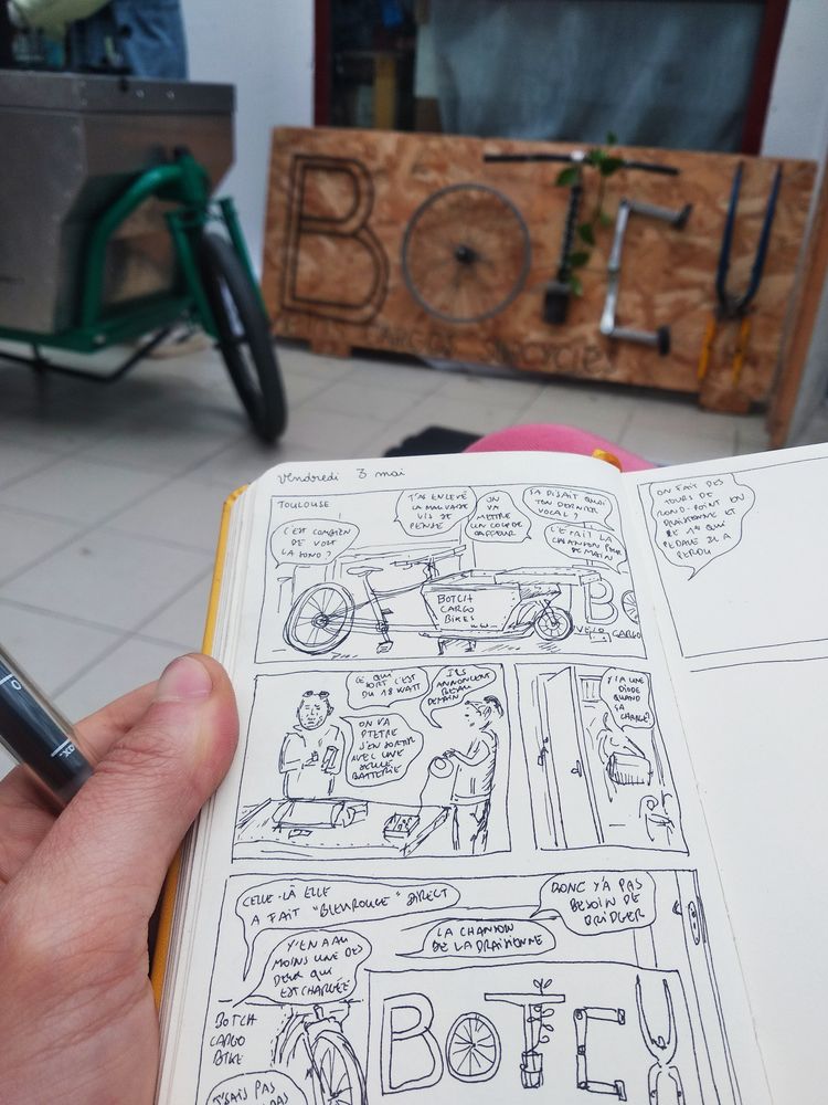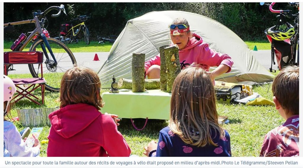 Le 2 Juin c’était la Fête du Vélo à Guingamp. Avec des ami.e.s on avait un stand sur les voyageu.r.se.s à vélo et j’y ai proposé un nouveau mini spectacle de théâtre d’objet dans lequel je raconte des anecdotes de voyages à vélo. C’était plutôt rigolo ! Peut-être que ça va devenir mon prochain spectacle.. ?